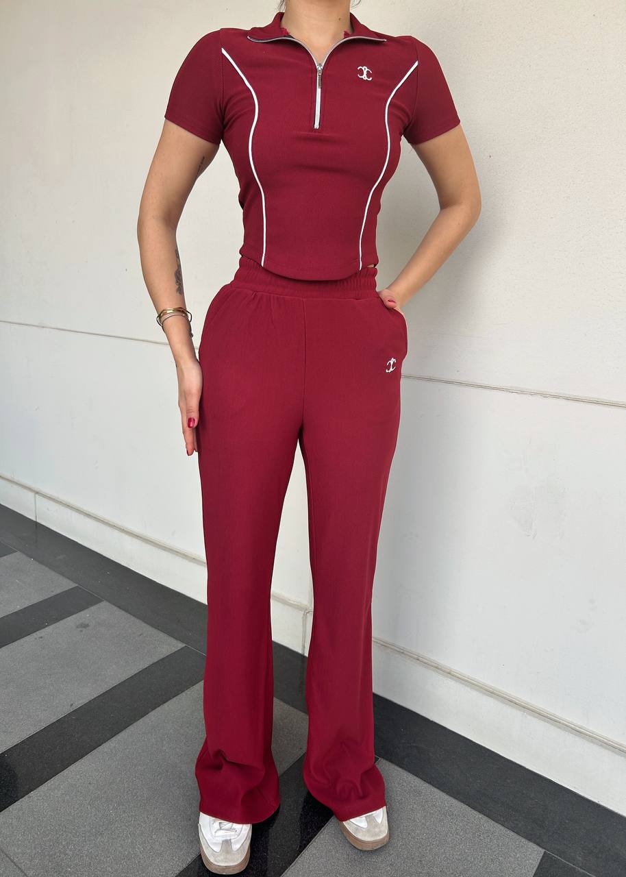 Ayla Sporty Zip Set – Wine Red