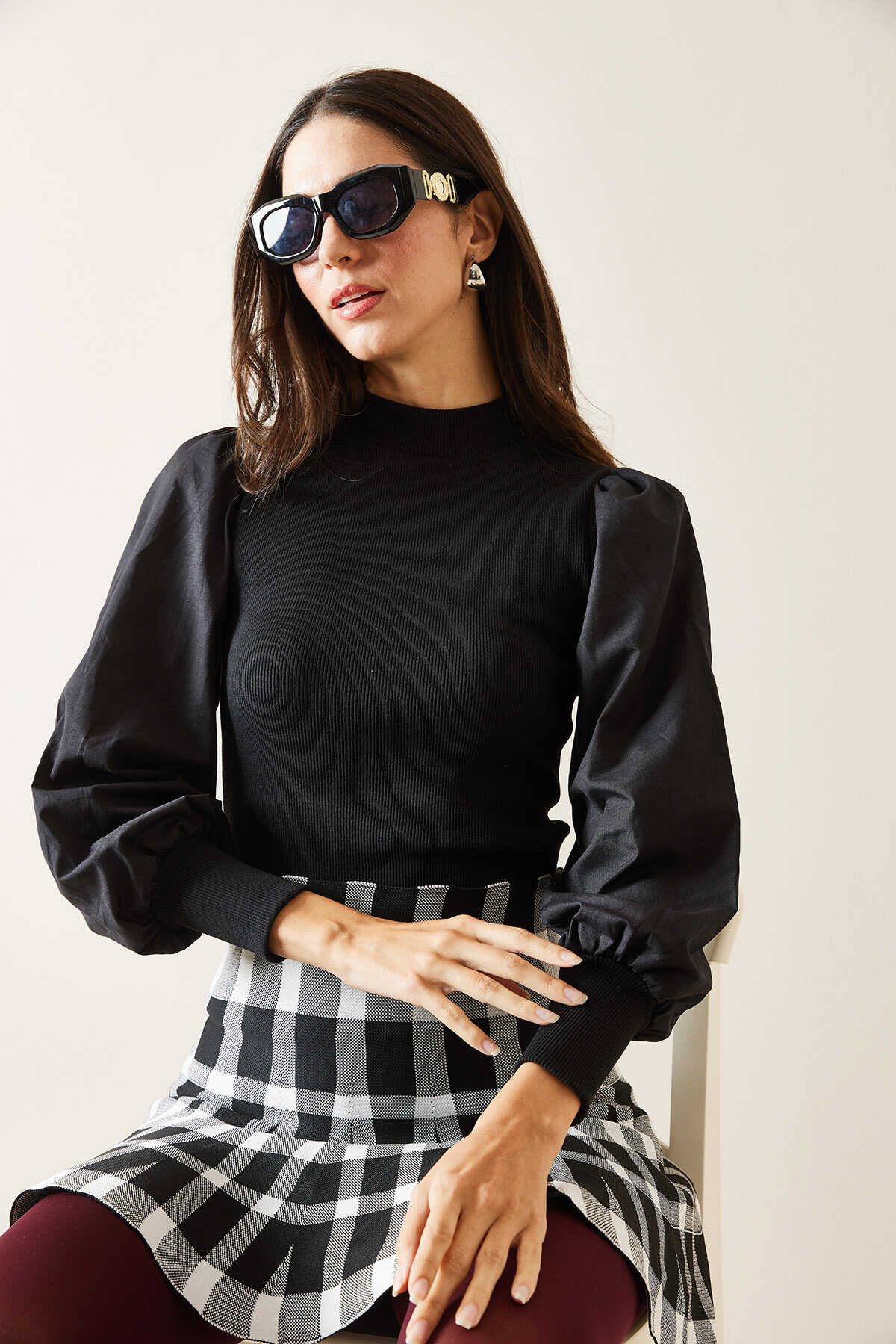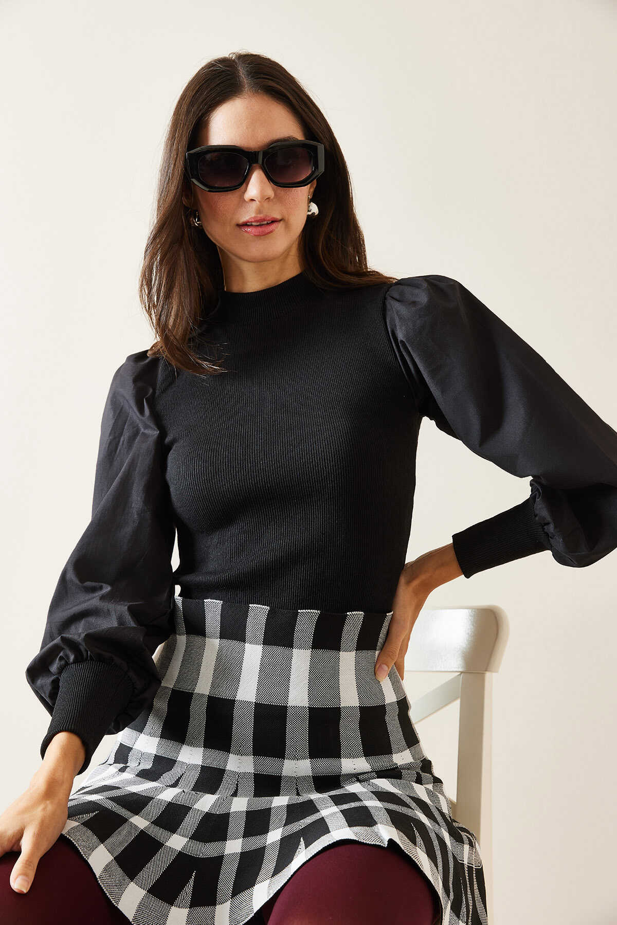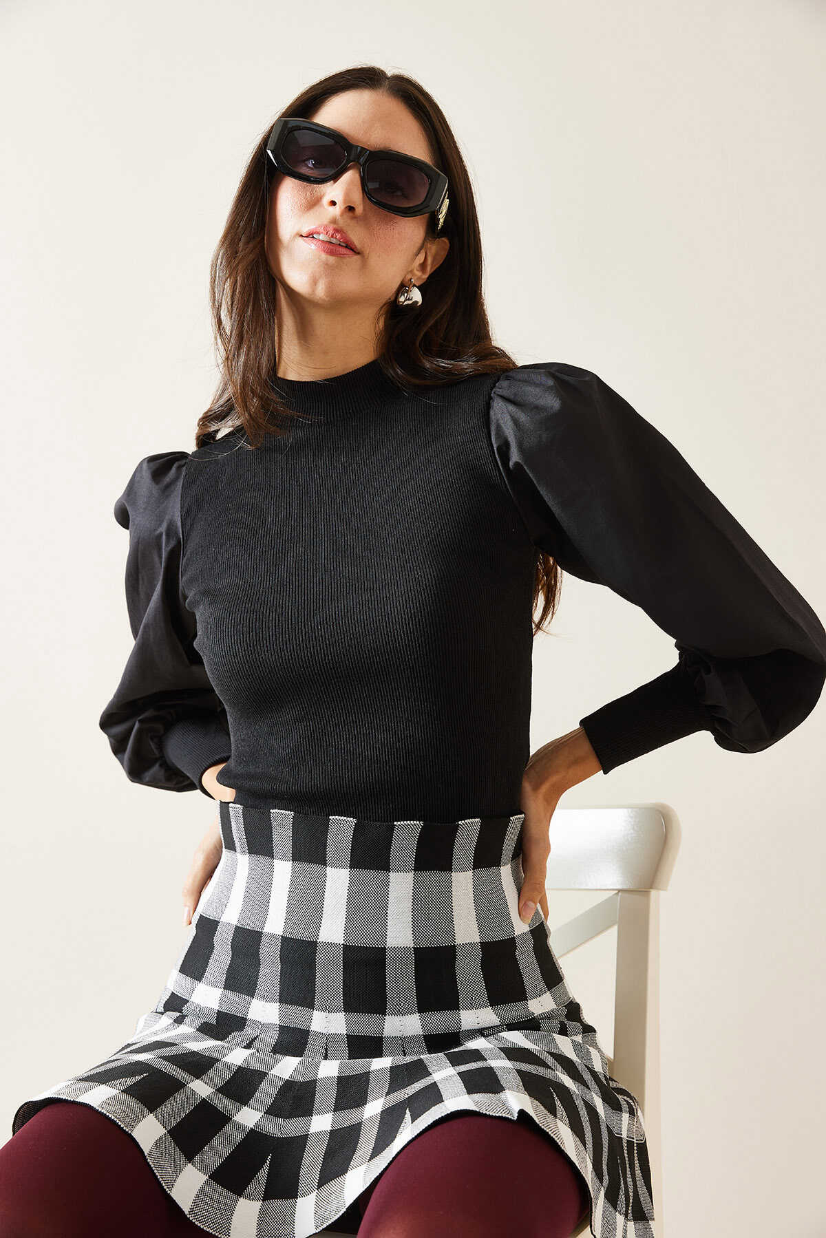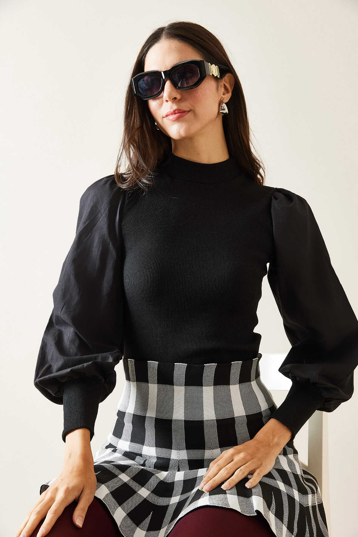 Add instant drama to your everyday style with the Puff Sleeve Contrast Knit Top – a chic fusion of comfort and statement-making fashion. Crafted from a ribbed knit body for a flattering fit and finished with voluminous puffed sleeves in a contrasting fabric, this top is made to turn heads without trying too hard.